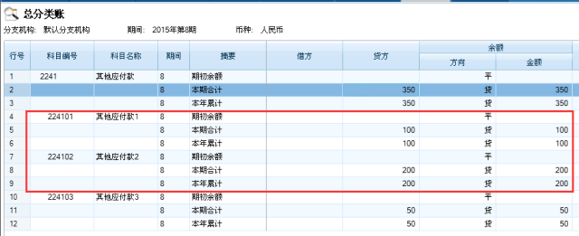 总账管理---自定义报表查询—资产负债表中查询出来的结果中其他应付款便是其他应付款1和其他应付款2之和。如图: