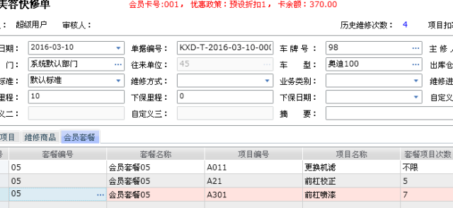 美容快修单--会员套餐项目使用
