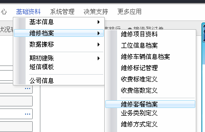 在基础资料---维修档案--维修套餐档案进行新增