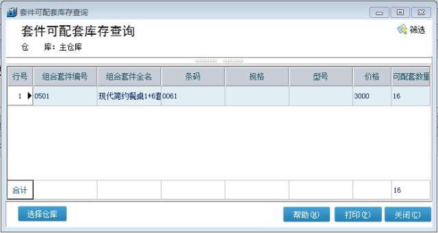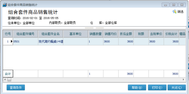 组合套件销售查询